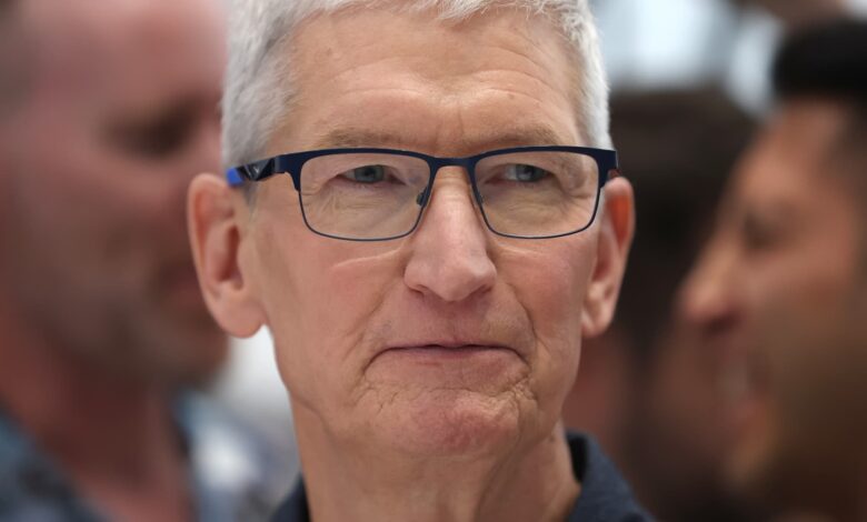 يقوم تيم كوك ، الرئيس التنفيذي لشركة Apple ، بفحص iPhone 16 الجديد خلال حدث Apple الخاص في مقر Apple في 09 سبتمبر 2024 في كوبرتينو ، كاليفورنيا.