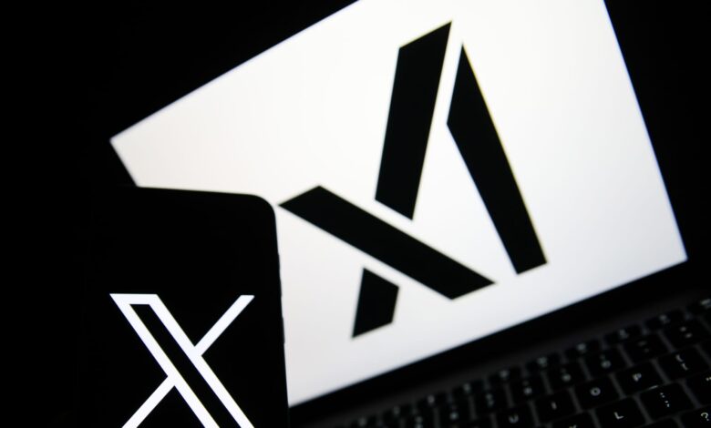 يظهر شعار X على الهاتف ، ويتم عرض شعار Xai على جهاز كمبيوتر محمول في Krakow ، بولندا ، في 1 أبريل 2025. (تصوير Klaudia Radecka/Nurphoto عبر Getty Images)