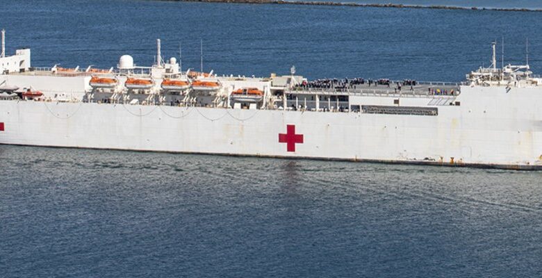 مايك تايلور ، مدير المهام المشتركة لشحن المستشفى لقيادة سيلف سيلايف العسكرية والبحرية الأمريكية ، التي تدير سفينتين في المستشفيات ، الرحمة (في الصورة أعلاه) والراحة.