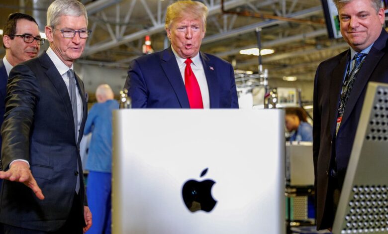 في الأسبوع الماضي ، قال ترامب إنه “واجه مشكلة صغيرة مع تيم كوك” ، وفي يوم الجمعة ، هدد بتصفع 25 ٪ تعريفة على iPhone في منشور وسائل التواصل الاجتماعي.
