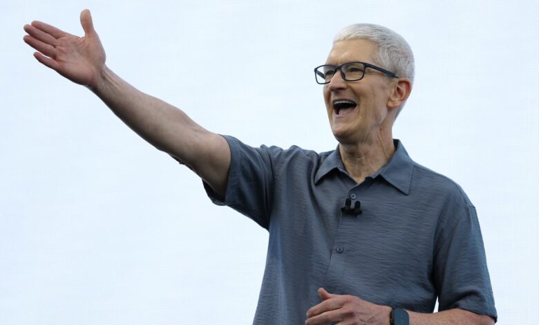 يتحدث الرئيس التنفيذي لشركة Apple Tim Cook خلال مؤتمر Apple Worldwide Developers (WWDC) في 09 يونيو 2025 في كوبرتينو ، كاليفورنيا.