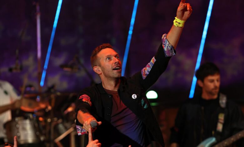 يؤدي كريس مارتن من كولدبلاي في إمبراطورية بوش في O2 Shepherd في 12 أكتوبر 2021 في لندن ، إنجلترا.