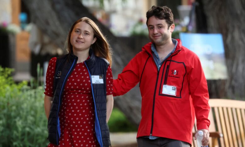 تحضر إيلينا نادولينسكي ، مؤسس ومدير التنفيذي في Iron Fish ، و Dylan Field ، الرئيس التنفيذي والمؤسس المشارك لـ Figma ، مؤتمر Allen and Sun Valley الإعلامي السنوي في Sun Valley ، أيداهو ، الولايات المتحدة ، 7 يوليو 2022.
