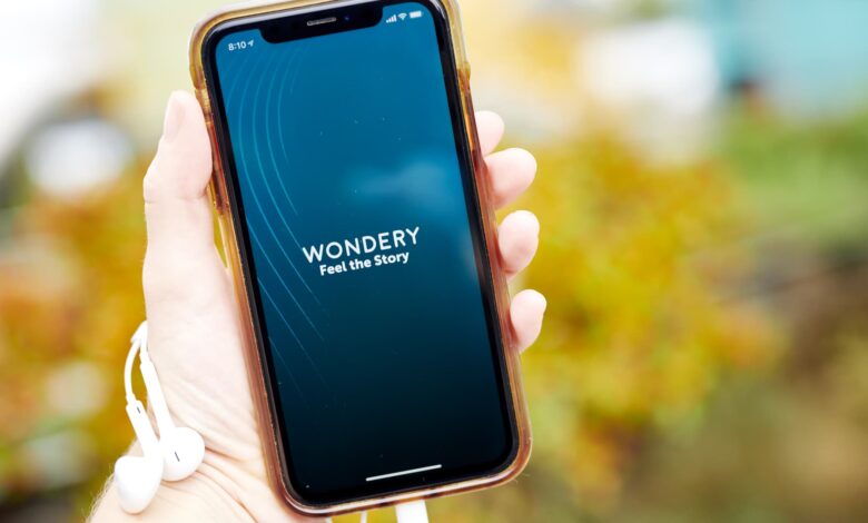 يتم عرض شعار Wondery على هاتف ذكي في صورة مرتبة تم التقاطها في Brooklyn Borough من نيويورك ، الولايات المتحدة ، يوم الثلاثاء ، 29 سبتمبر 2020.