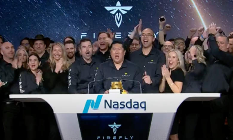 يرن Firefly Aerospace جرس الافتتاح في بورصة ناسداك في 7 أغسطس 2025.