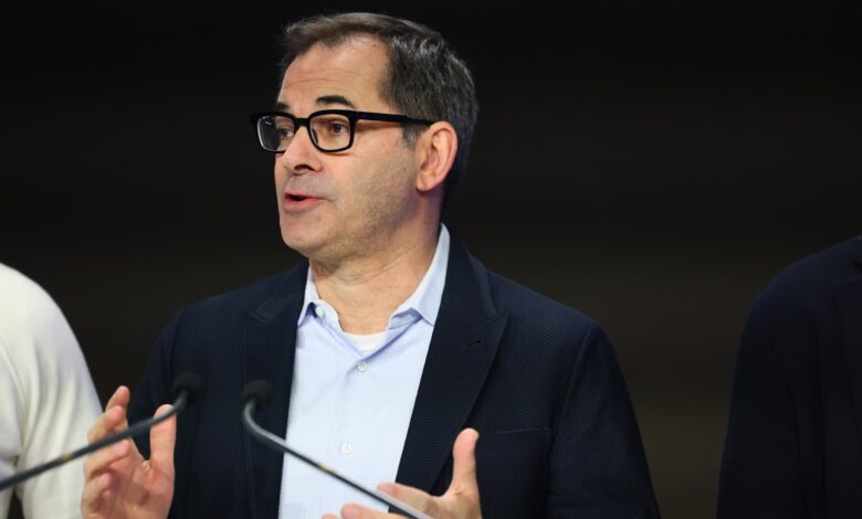 يتحدث مايك إنترتور ، المؤسس المشارك والرئيس التنفيذي لشركة Coreave ، في مقر NASDAQ في نيويورك في 28 مارس 2025.