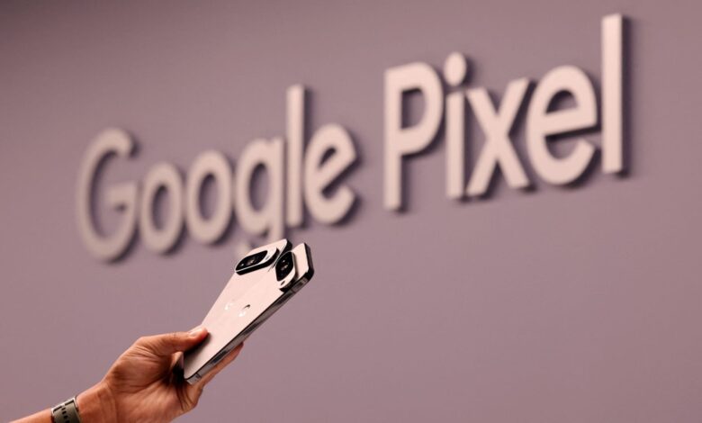 يحمل الشخص هواتف Google Pixel 10 Pro Mobile خلال حدث “Made By Google” ، الذي تم تنظيمه لتقديم أحدث الإضافات إلى محفظة أجهزة البكسل من Google ، في بروكلين ، نيويورك ، الولايات المتحدة ، 20 أغسطس 2025.