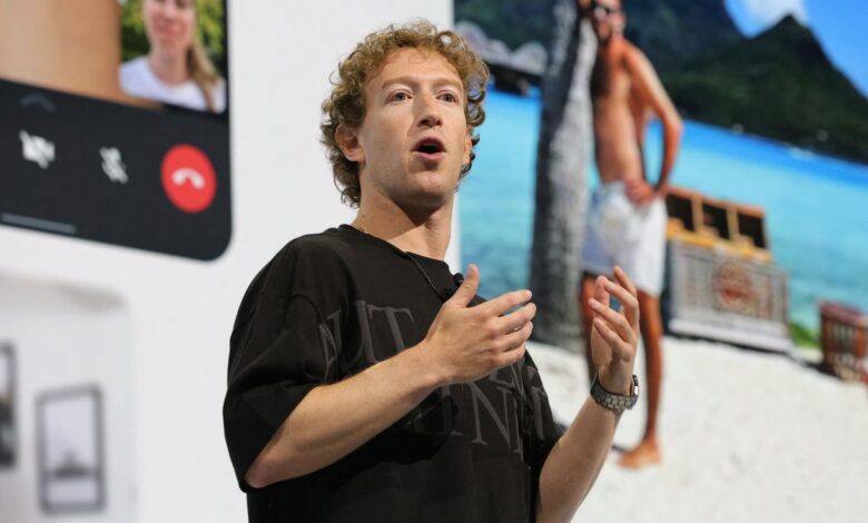 يلقي مارك زوكربيرج ، الرئيس التنفيذي لشركة Meta ، خطابًا رئيسيًا في الحدث السنوي لـ Meta Connect في مقر الشركة في مينلو بارك ، كاليفورنيا ، في 25 سبتمبر 2024.