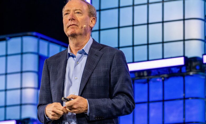 براد سميث ، رئيس شركة Microsoft Corp. ، في مؤتمر قمة الويب في فانكوفر ، كولومبيا البريطانية ، كندا ، يوم الأربعاء ، 28 مايو 2025. يجمع المؤتمر السنوي أرقام الصناعة الرئيسية في التكنولوجيا.