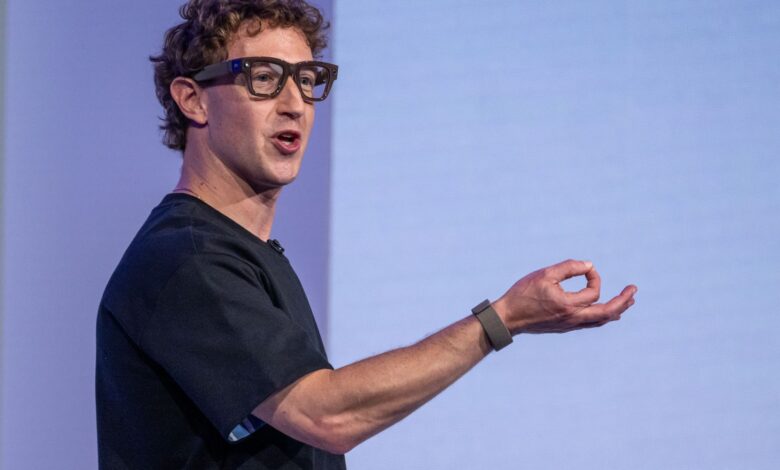 يرتدي مارك زوكربيرج ، الرئيس التنفيذي لشركة Meta Platforms Inc. ، زوجًا من نظارات Meta Ray-Ban AI خلال حدث Meta Connect في مينلو بارك ، كاليفورنيا ، الولايات المتحدة ، يوم الأربعاء ، 17 سبتمبر 2025.