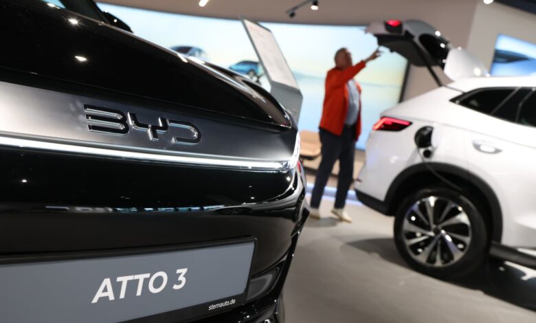 تقدم الشركة الصينية للسيارات الكهربائية BYD طرزها في منطقة المساحة المفتوحة خلال حركية IAA في ميونيخ ، بافاريا ، ألمانيا ، في 12 سبتمبر 2025.
