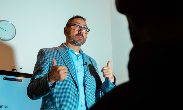 يتحدث الرئيس التنفيذي لشركة كيربراس أندرو فيلدمان إلى وسائل الإعلام في مكتب كولوفور في سانتا كلارا ، كاليفورنيا ، في 12 مارس 2024.