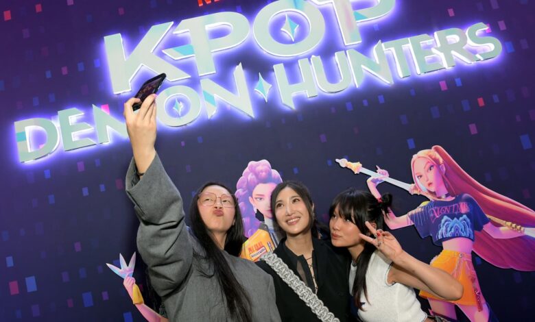 أودري نونا، وEJAE، وRei Ami يحضرون العرض الخاص لـ KPop Demon Hunters في مسرح Netflix Tudum في 16 يونيو 2025 في لوس أنجلوس، كاليفورنيا.، الولايات المتحدة