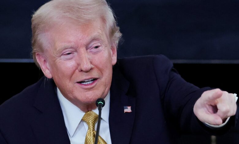 الرئيس الأمريكي دونالد ترامب يشير خلال إعلان بشأن سياسات إدارته ضد الكارتلات والاتجار بالبشر، من غرفة الطعام الرسمية بالبيت الأبيض في واشنطن العاصمة، الولايات المتحدة، 23 أكتوبر 2025.