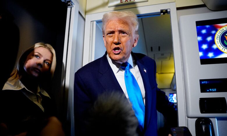 الرئيس الأمريكي دونالد ترامب يتحدث إلى الصحفيين في اليابان على متن طائرة الرئاسة في طريقه إلى كوريا الجنوبية في 29 أكتوبر 2025.
