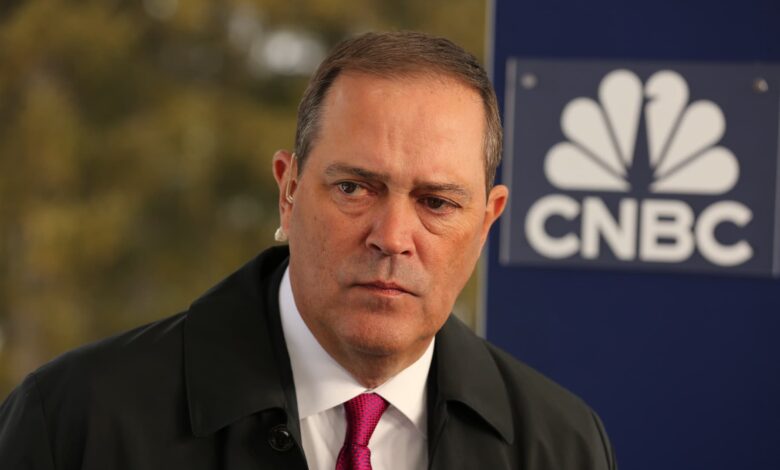 تشاك روبينز، الرئيس التنفيذي لشركة Cisco، يتحدث على Squawk Box على قناة CNBC خارج المنتدى الاقتصادي العالمي في دافوس، سويسرا في 22 يناير 2025.