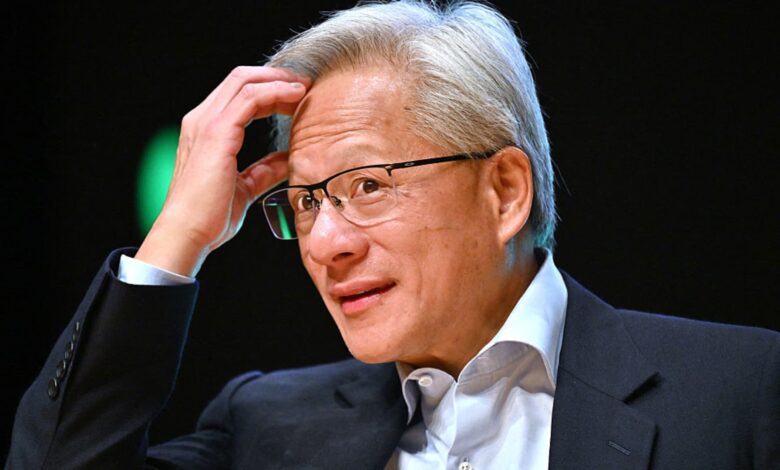 يتفاعل مؤسس Nvidia والرئيس التنفيذي Jensen Huang خلال مؤتمر صحفي في قمة الرؤساء التنفيذيين لمنتدى التعاون الاقتصادي لآسيا والمحيط الهادئ (APEC) في جيونجو في 31 أكتوبر 2025.