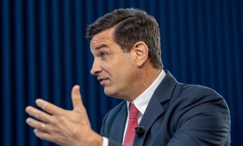 بن باول، كبير الاستراتيجيين لمنطقة الشرق الأوسط وآسيا والمحيط الهادئ في معهد بلاك روك للاستثمار، خلال مؤتمر أسبوع أبوظبي المالي (ADFW).
