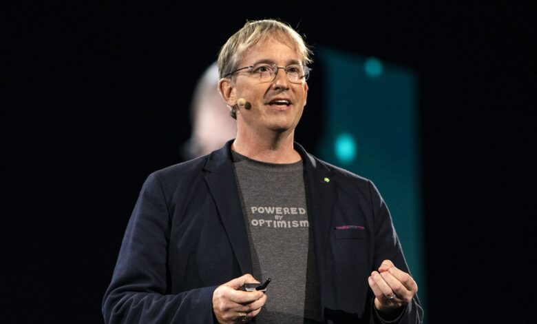 يتحدث كولين أنجل، المؤسس المشارك والرئيس التنفيذي لشركة iRobot Corp.، خلال حدث الكشف عن الطائرات بدون طيار لتوصيل الطلبات من Prime Air في لاس فيغاس، نيفادا، الولايات المتحدة، يوم الأربعاء، 5 يونيو 2019.