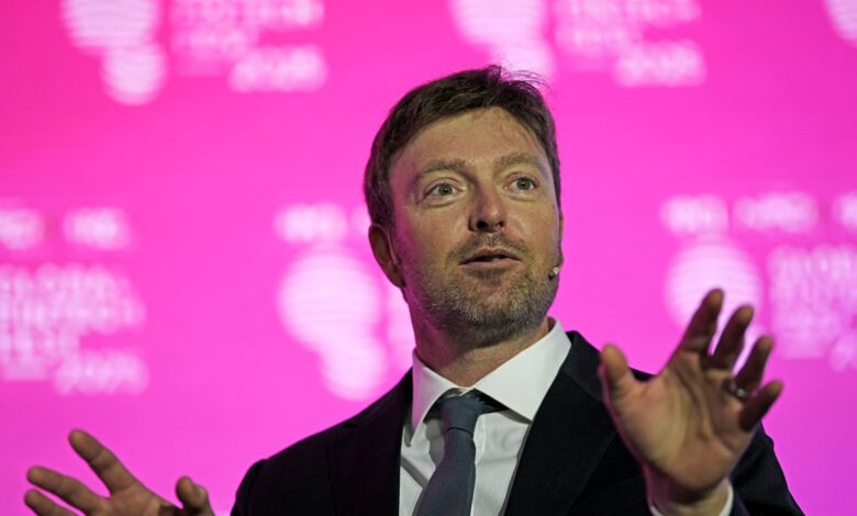 الرئيس التنفيذي لشركة PayPal، أليكس كريس، يتحدث في مهرجان التكنولوجيا المالية العالمي في مومباي، الهند، في 7 أكتوبر 2025.